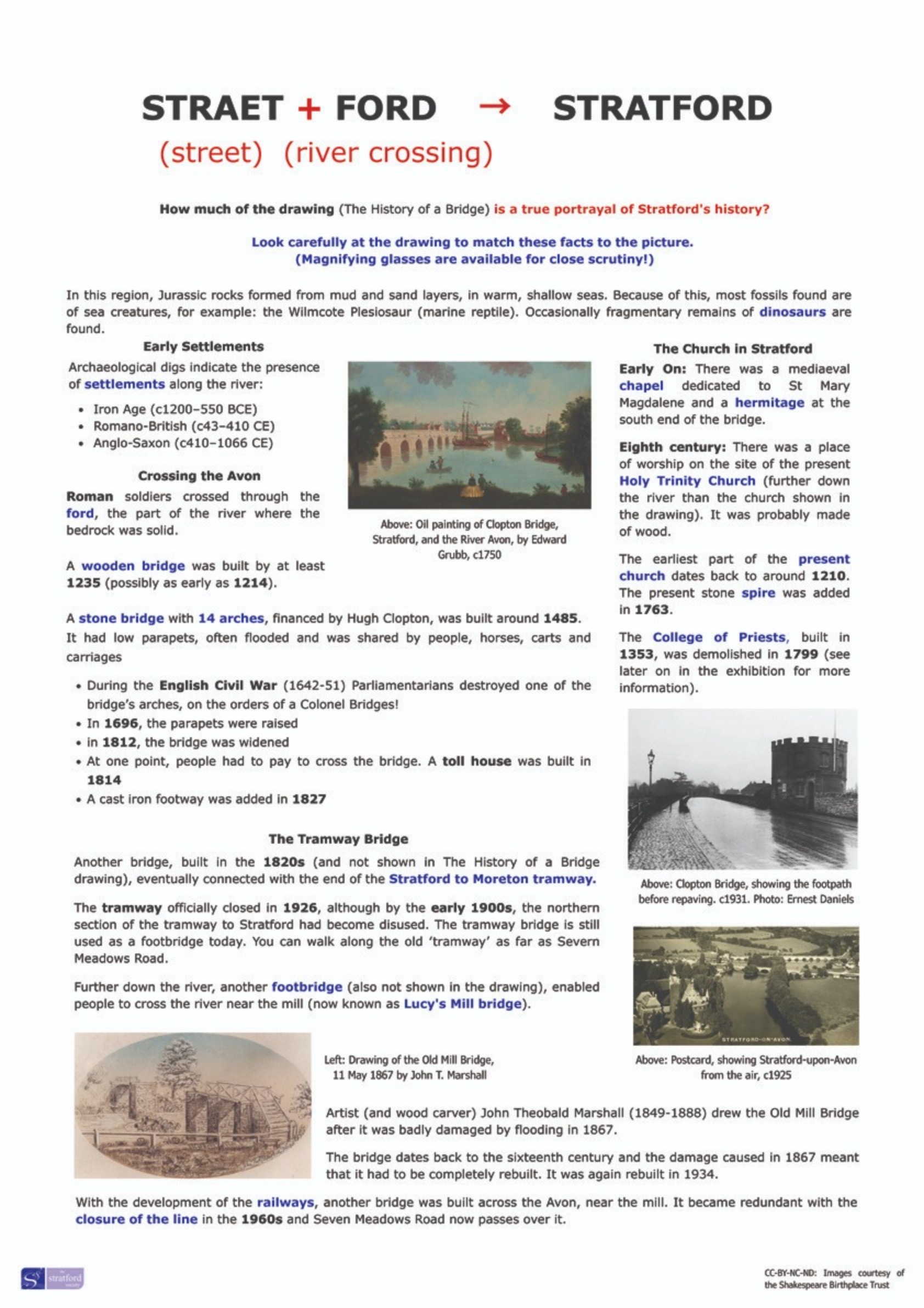 - Richly illustrated interpretation boards covering aspects of Stratford's history